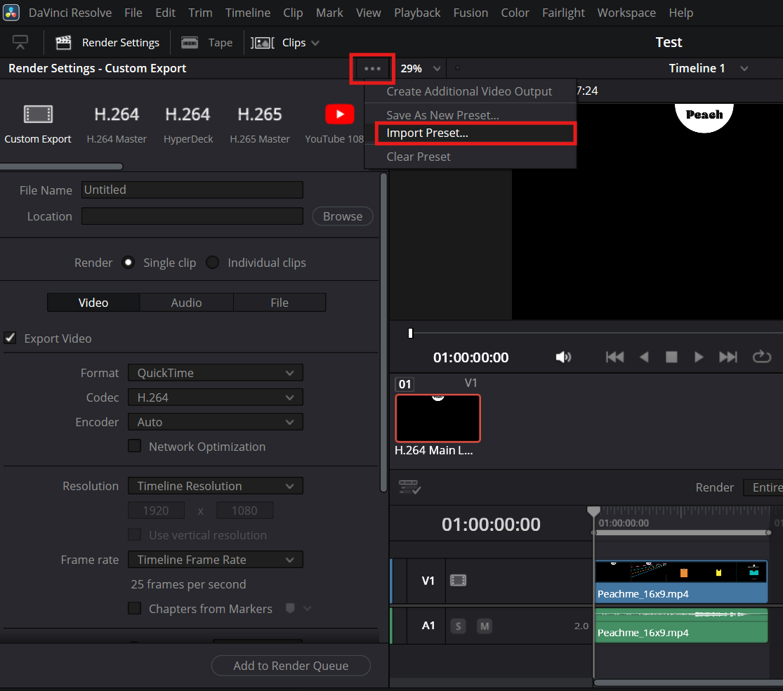 So importieren Sie Ihre Exportvoreinstellung in DaVinci Resolve