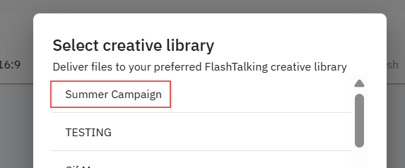 - Sie sehen nun eine Liste aller Flashtalking | Innovid Archiven, die Ihnen zur Verfügung stehen. Klicken Sie auf das betreffende Archiv und es wird sich automatisch verbinden und Ihre Datei bereitstellen