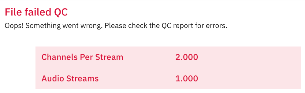 El canal izquierdo debe estar presente en la secuencia uno, el canal derecho en la secuencia dos. Si los canales de audio izquierdo y derecho están presentes en la secuencia uno, el control de calidad fallará.