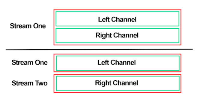 Cape Advanced TV requiere que cada canal de audio tenga su propio flujo discreto.