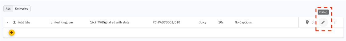 Si aún no se ha cargado un anuncio, es posible cambiar o editar la duración simplemente haciendo clic en el icono Editar anuncio para abrir la ventana de anuncios.