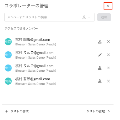 4. Haz clic en la “X” en la esquina superior derecha una vez que los colaboradores en la lista de colaboradores añadidos estén configurados.