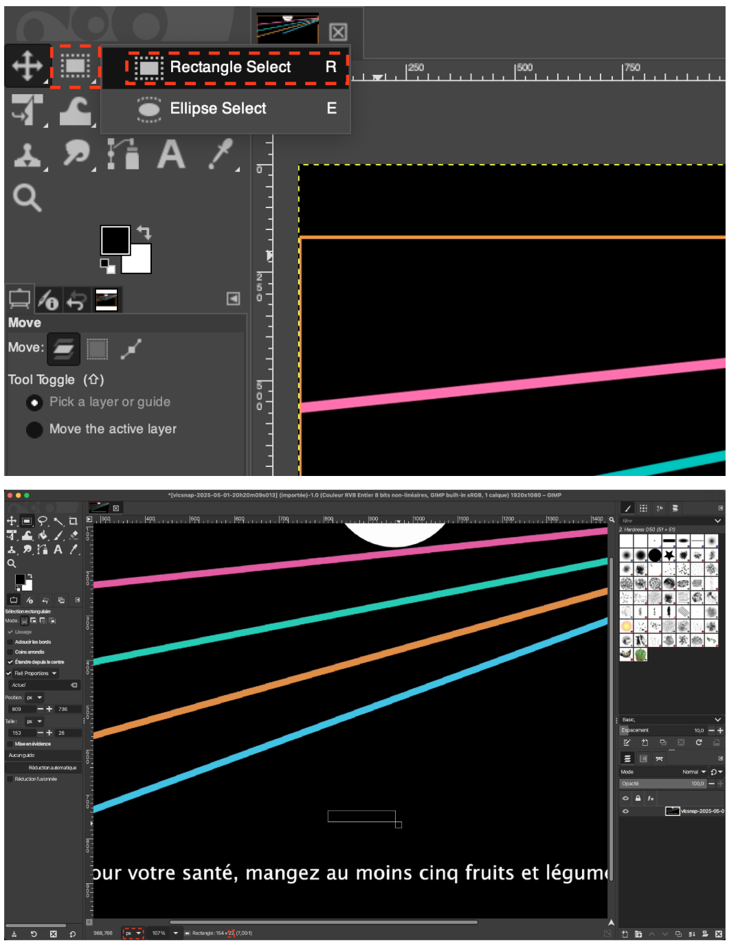 - Usa la herramienta “Selección rectangular” (Rectangle Select).
