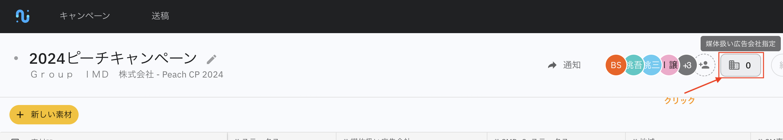 2. Ouvrez la campagne créée et cliquez sur le bouton « Spécification de l'agence média » en haut à droite de l'icône de construction.