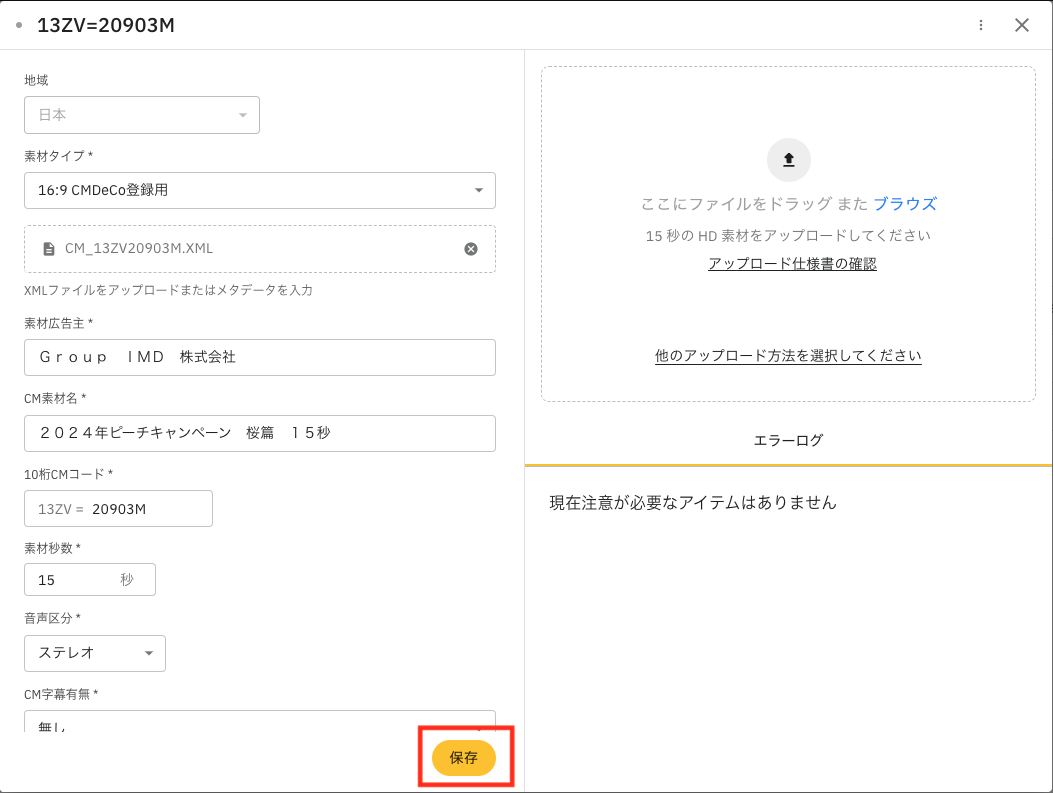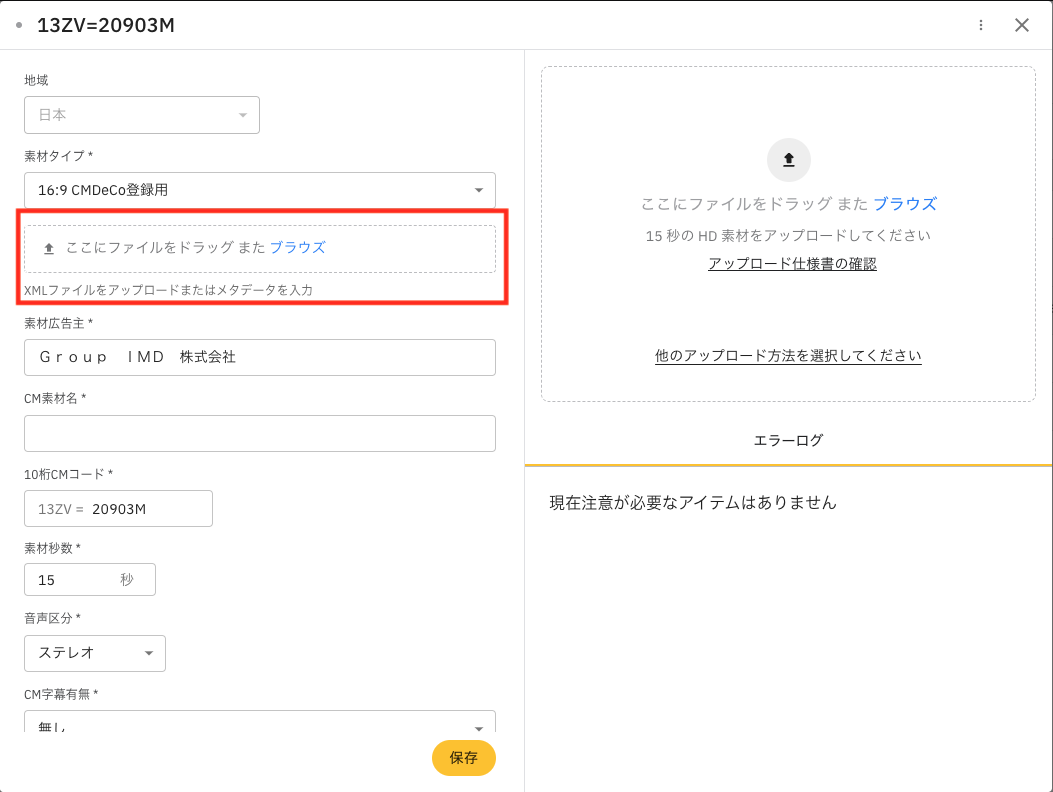 Si la valeur de « Classification du type de matériau » dans le fichier XML est « 15 » pour XDCAM, elle sera convertie en « 18 » pour la soumission en ligne lors de l'importation.