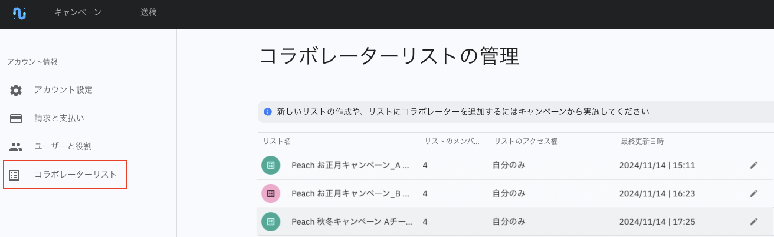 [Japan System Guide] Cape Advanced TV:Using Collaborator Lists