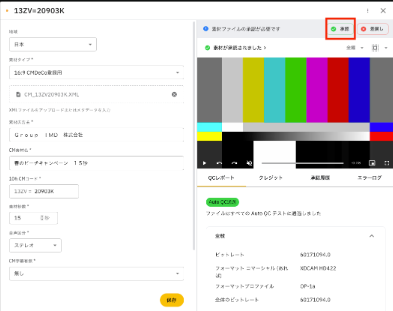 Per favore, controlla il video nella schermata di conferma dell'annuncio, così come la schermata dei crediti e i metadati nel video.