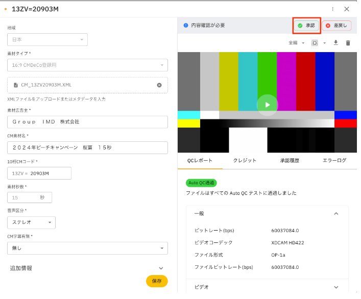 L'Approvazione del caricamento è una funzione che consente alla casa di produzione o alla società di post-produzione che ha caricato il materiale di confermare il contenuto del lavoro.