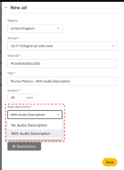 Possiamo anche aiutarti ad aggiungere la descrizione audio ai tuoi spot prima della consegna con l'aiuto dei nostri partner locali. Per ulteriori informazioni, consulta l'articolo seguente...