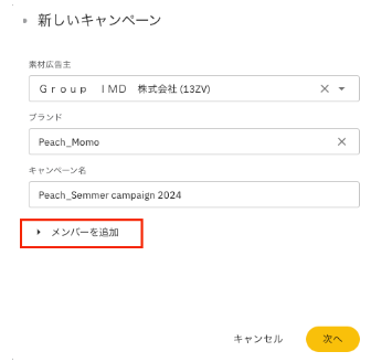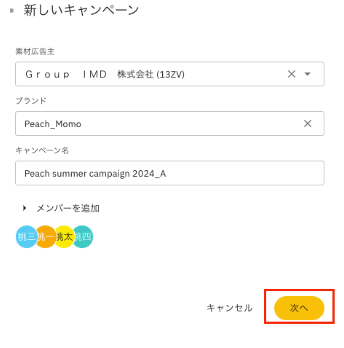 2. Inserisci "Inserzionista", "Marca" e "Nome della Campagna".