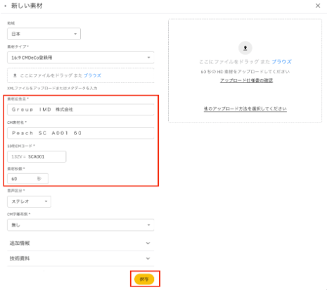 7. Inserisci "Inserzionista," "Titolo Annuncio," "Codice CM a 10 cifre" e "Durata del Materiale" e clicca sul pulsante "Salva".