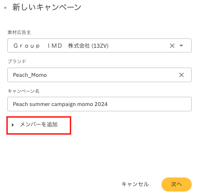 コラボレーターは、キャンペーンの作成時、編集時、あるいはワークフローの進行に合わせて追加できます。