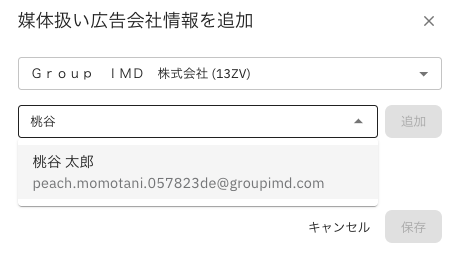 Digite o nome da pessoa de contato na empresa de mídia no campo inferior e selecione no menu suspenso.