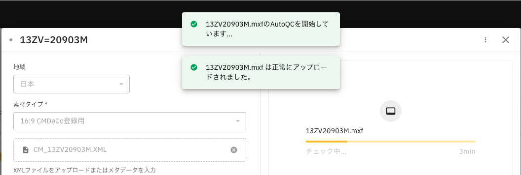 Se a aprovação do upload não for solicitada, prossiga diretamente para a próxima etapa "QC humano (verificação de qualidade visual em nosso estúdio)" ou「最終コンテンツ承認」após concluir a operação se você verificar o conteúdo.