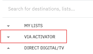 Os destinos do ativador são listados separadamente dos destinos diretos no Cape Advanced TV.