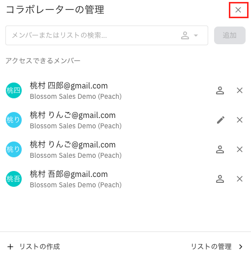 4. Clique no “X” no canto superior direito, após os colaboradores da lista forem adicionados e definidos.